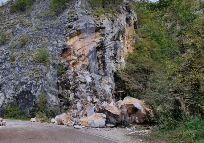 Frana sulla strada provinciale per Arni in alta Versilia