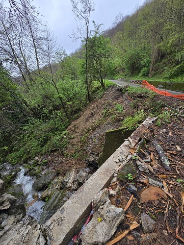 Il secondo intervento, per un importo di oltre 80 mila euro, interessa via Fonda in località Le Lame, a Levigliani, dove da anni era presente un dissesto sul lato valle della strada, causato dall'erosione dovuta alle acque superficiali e da una regimazione non adeguata dei deflussi. In questo caso i lavori prevedono la realizzazione di una paratia di micropali con tiranti, per una lunghezza di circa 15 metri, finalizzata alla stabilizzazione del versante e al consolidamento della carreggiata. A completamento dell'intervento strutturale saranno realizzate anche opere di regimazione delle acque superficiali, con griglie stradali, canalette, drenaggi e il ripristino del parapetto stradale sul lato valle.