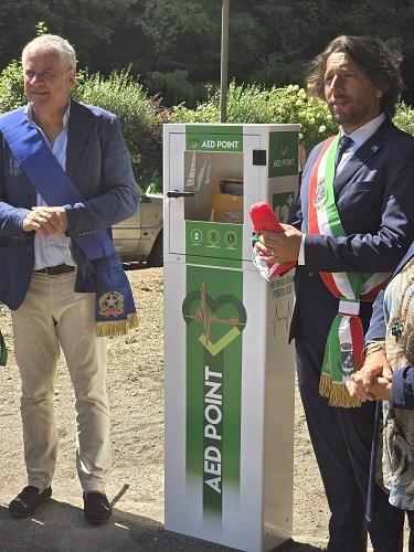 Nella foto: Alessandro Pelagatti con il presidente della Provincia di Lucca mentre inaugurano il Dae a Mulina di Stazzema.