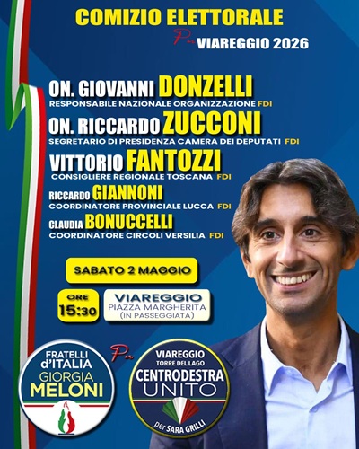 Elezioni Viareggio: sabato 2 maggio incontro con Giovanni Donzelli
