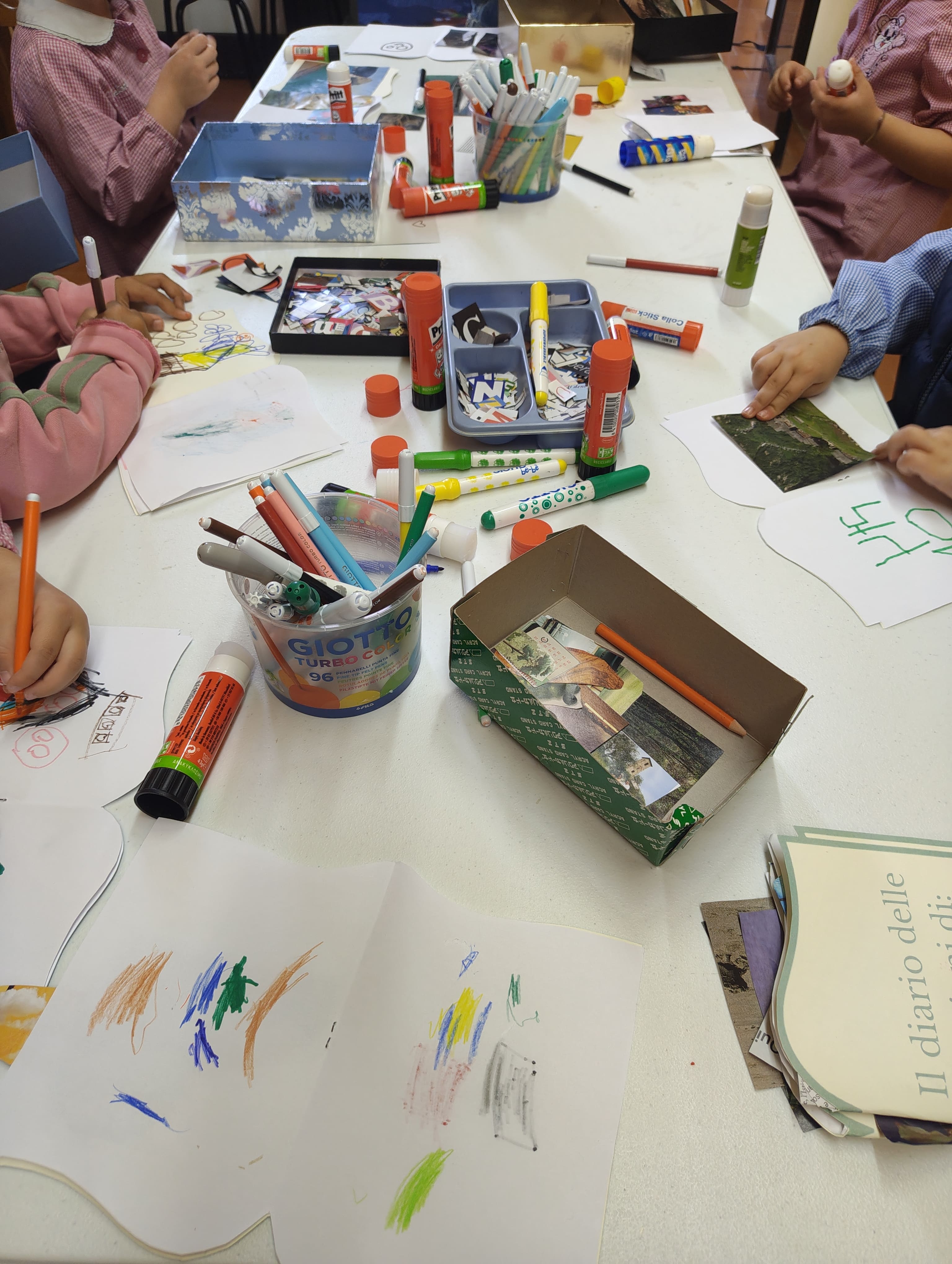 Una visita "animata" e su misura; poi una "caccia al bozzetto", a suon di filastrocche; infine la creazione del "Diario delle stagioni", armati di pennarelli, colla e fantasia.