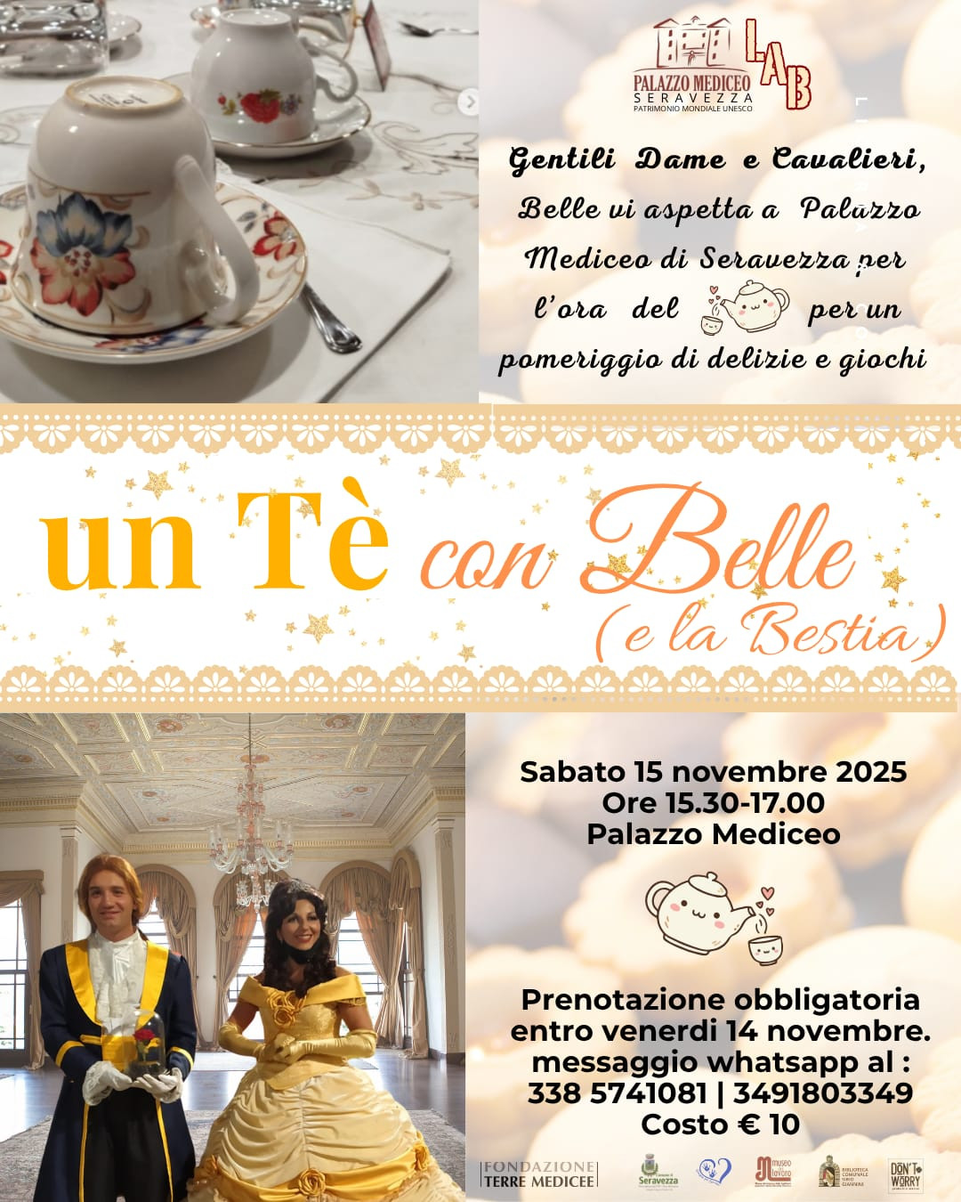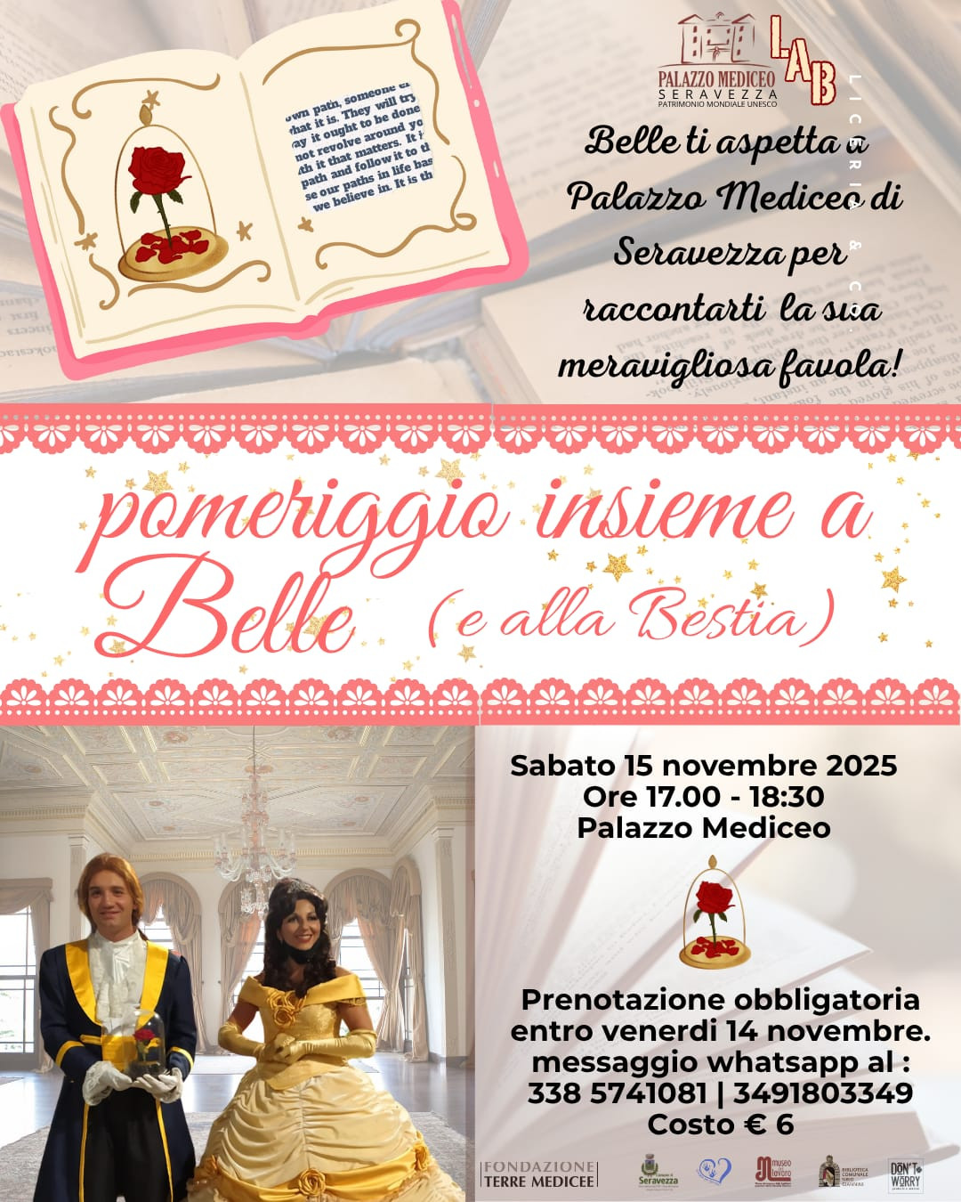Un pomeriggio da favola a Palazzo Mediceo, sabato 15 novembre a partire dalle ore 15. Protagonisti di questa particolare iniziativa, Belle e la Bestia con un tè e un pomeriggio di delizie e giochi dalle ore 15,30 alle 17 e a seguire, sino alle 18,30, Belle racconterà la sua meravigliosa favola a bambine e bambini sino ai quattro anni di età.