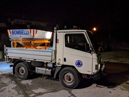 In queste ore - lunedì 12 gennaio - la Protezione Civile di Camaiore è a lavoro nelle operazioni di spargimento del sale nelle zone più colpite dalle basse temperature.