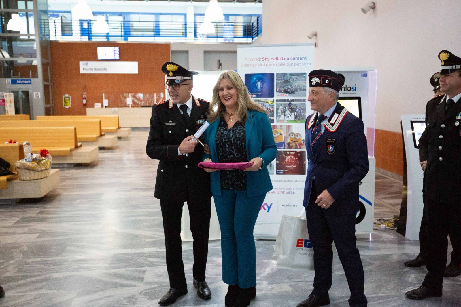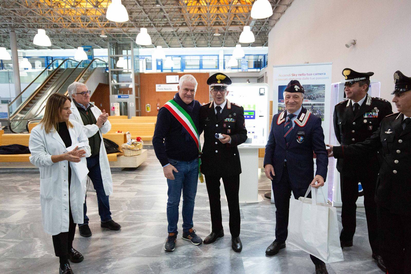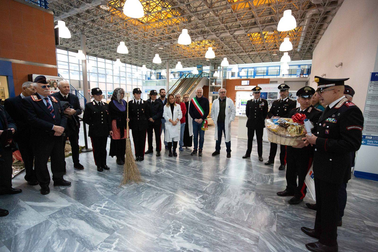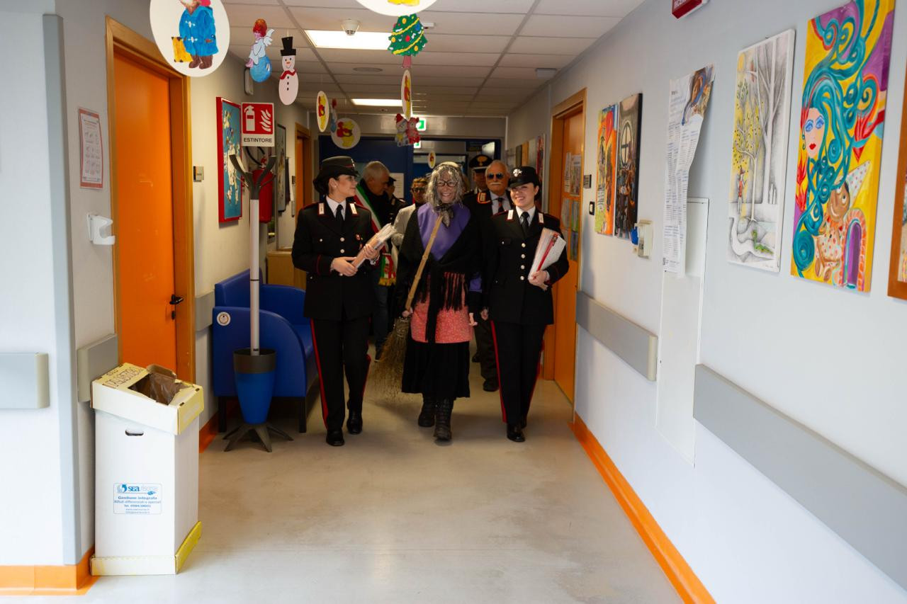 La Befana del Carabiniere - insieme ai rappresentanti delle sezioni provinciali dell'Associazione e i militari del Comando Stazione Carabinieri di Lido di Camaiore - è stata accolta dalla direttrice sanitaria dell'ospedale Grazia Luchini, dal nuovo responsabile della Pediatria Giovanni Suriano e Maria Roldan Oliva Del Mar per il Pronto soccorso. Presente anche il sindaco di Camaiore Marcello Pierucci.