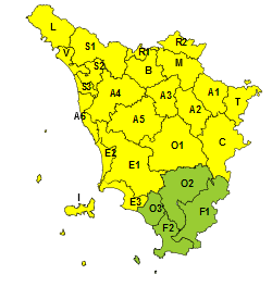 Per questo la Sala Operativa della protezione civile regionale estende dalle 21 di oggi - domenica 16 novembre - l’allerta già in vigore con codice giallo a quasi tutto il territorio della regione, incluse le isole dell’Arcipelago.