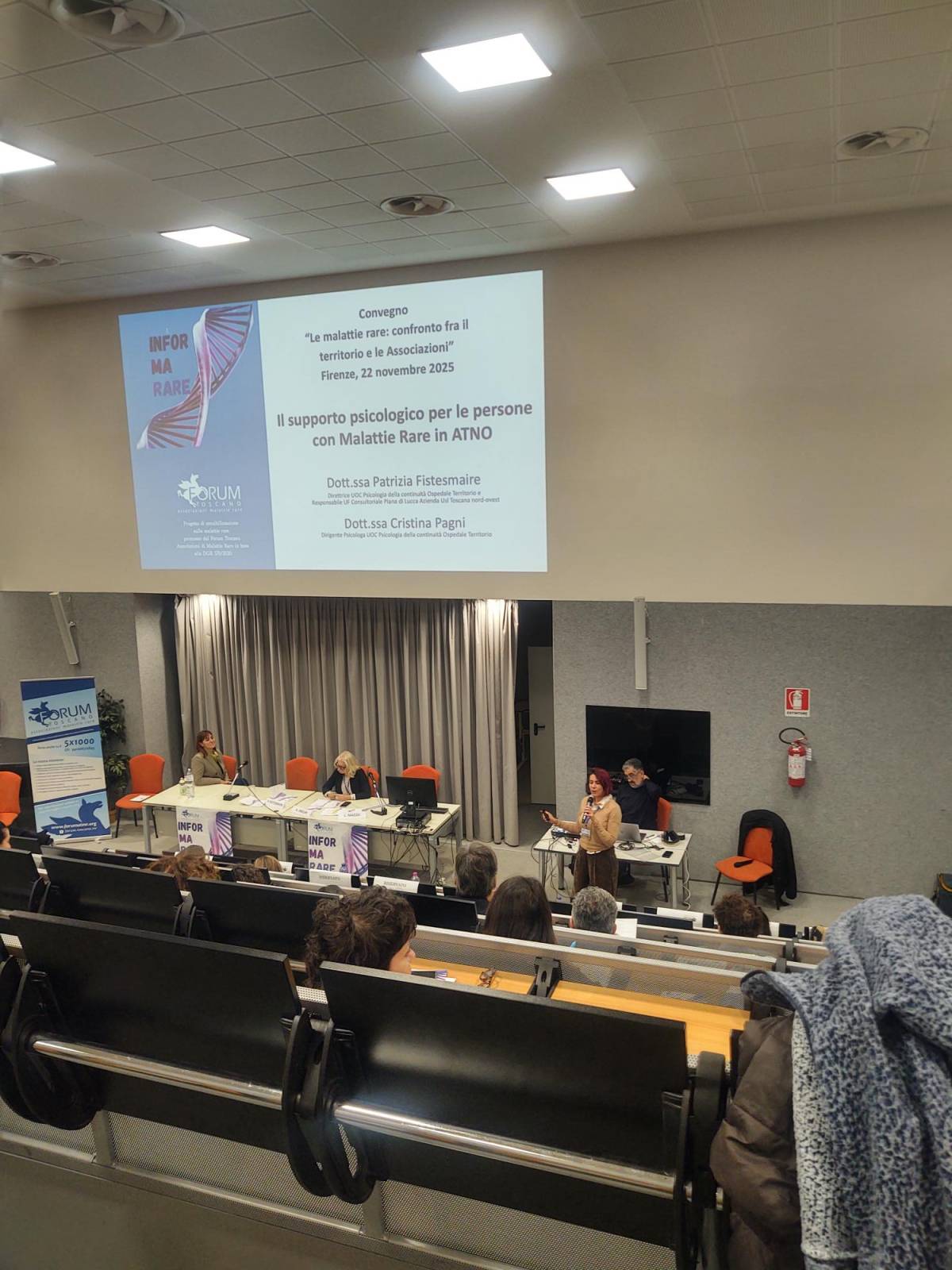 Sabato 22 novembre al NIC Careggi - Firenze - si è infatti svolto l’evento finale - accreditato ECM - del progetto “InforMaRare” organizzato dal Forum Toscano associazioni malattie rare, che si è articolato in incontri coordinati e condivisi con le Asl del Servizio sanitario regionale, tra cui l’Azienda USL Toscana nord ovest, che ha quindi partecipato all’iniziativa con i suoi referenti e con il personale interessato e che si è distinta per organizzazione e concretezza, instaurando collaborazioni sempre più forti anche con i centri universitari toscani.