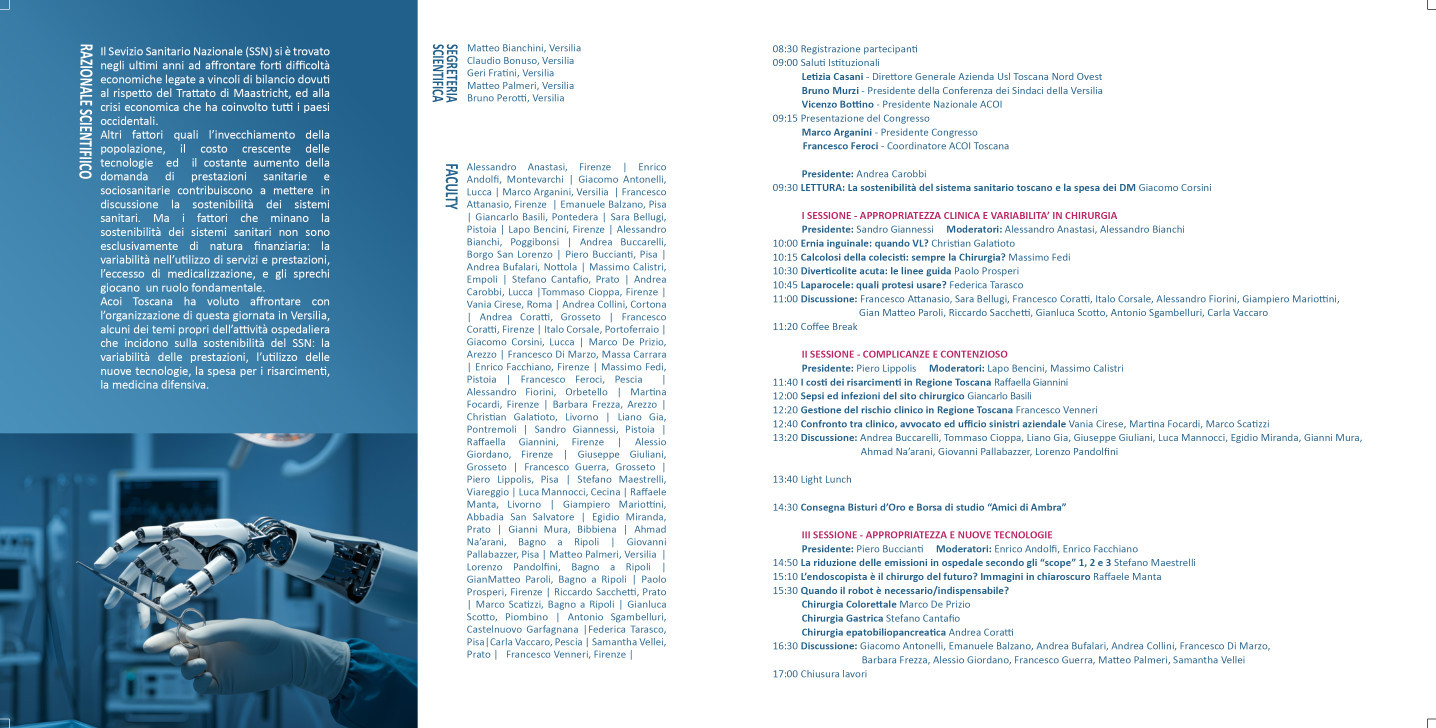 “Con grande onore ho accettato di organizzare, insieme al Coordinatore Regionale ACOI Toscana, il Dr. Francesco Feroci, una giornata ACOI in Versilia – spiega il Dr. Arganini – per affrontare e discutere, insieme ai colleghi, alcuni temi fondamentali dell’attività ospedaliera che incidono direttamente sulla sostenibilità del Servizio Sanitario Nazionale: la variabilità delle prestazioni, l’utilizzo delle nuove tecnologie, il peso dei risarcimenti e la medicina difensiva.”