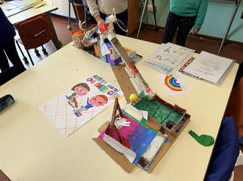 Nella foto, scatti dei giocattoli durante le visite alle scuole.