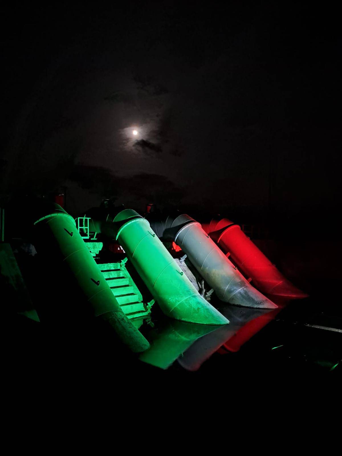"Senza la fitta rete di idrovore del Consorzio di Bonifica Toscana Nord – conclude Sodini – la costa apuo-versiliese e molte aree interne sarebbero completamente diverse. Molte zone si trovano sotto il livello del mare e solo grazie a questi impianti, alcuni attivi tutto l'anno, è possibile mantenerle all'asciutto. Illuminare oggi le idrovore significa accendere un segnale nel buio, ricordare a tutti, noi compresi, l'importanza del nostro lavoro e della tutela dell'acqua come bene comune".
