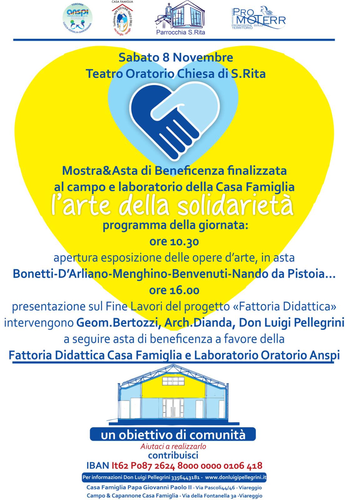 Sabato 8 Novembre al Teatro Oratorio Chiesa di S. Rita Viareggio si terrà la presentazione del progetto e fine lavori “Fattoria Didattica della Casa Famiglia” a seguire asta di beneficenza di artisti famosi del novecento tutto il ricavato sarà a favore del progetto.