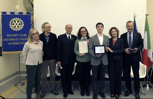 Nella splendida cornice di Villa Argentina a Viareggio, si è svolta la cerimonia di consegna della terza edizione del Premio di Studio dedicato alla memoria del dottor Massimo Tarabella. Un’iniziativa voluta e creata dalla consorte, la dottoressa Sandra Cosci, per ricordarne la sua figura attraverso un concreto e reale sostegno ai giovani ed alla ricerca, con la collaborazione dell’Università di Pisa Dipartimento di Biologia. L’edizione 2026, la terza in ordine di tempo, si è ulteriormente arricchita grazie alla collaborazione del Rotary Club Sant’Anna di Stazzema – Via Francigena, di cui la dottoressa Cosci è entrata far parte come Socia. Il premio è stato assegnato al dottor Giacomo Tornabene, neolaureato ed autore di una tesi incentrata sull’utilizzo dell’intelligenza artificiale per lo sviluppo di strumenti in grado di guidare l’ingegnerizzazione per combattere batteri resistenti agli antibiotici, aprendo nuove prospettive nella lotta alla resistenza antimicrobica, tema sempre più centrale nella ricerca scientifica, ha chiarito la relatrice della tesi Professoressa Maria Grazia Di Luca. Un premio ancora più importante perché Tornabene è stato il primo laureato del nuovo corso in Biotechnologies and Applied Artificial Intelligence for Health, a conferma dell’importanza di percorsi formativi innovativi e interdisciplinari. “Massimo ha sempre creduto nei giovani e nella forza della ricerca – ha ricordato la dottoressa Cosci – e questo premio vuole esser un’opportunità concreta per chi si impegna e guarda al futuro”. Ad affiancare, sin dalla prima edizione, la Dott.ssa Cosci nell’organizzazione di questa importante iniziativa il Prof. Sandro Paci ed il Dott. Bruno Ulisse Viviani, socio fondatore del Rotary Club Sant’Anna di Stazzema – Via Francigena e amico fraterno di Tarabella. “Tengo molto a sottolineare il valore di questo premio – sottolinea Viviani - e ricordare il Dott. Tarabella attraverso la valorizzazione dei giovani e della ricerca è il modo più autentico per tenere viva la sua memoria”