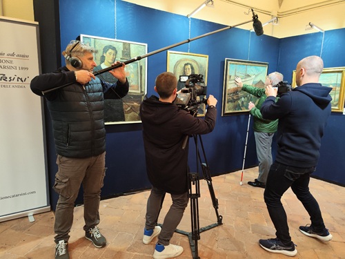 Il servizio è stato girato di recente nelle sale al piano terra di Palazzo Guinigi, a Lucca, dove fino al prossimo 3 maggio è in corso la sesta tappa della mostra itinerante e completamente accessibile Il Novecento di Catarsini. Dalla macchia alla macchina.