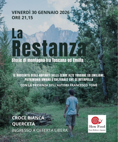 Su questo tema la Condotta Slow Food "Terre Medicee e Apuane" organizza una serata venerdì 30 gennaio alla Croce Bianca di Querceta, via Generale Carlo Alberto Dalla Chiesa, 158, nella quale sarà proiettato il docufilm di Francesco Tomé "La Restanza. Storie di montagna fra Toscana ed Emilia" - 2024 -. Sarà presente l'autore, inizio alle 21,15. Ingresso a offerta libera.
