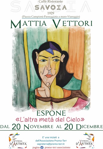 Dal 20 novembre al 20 dicembre al Caffè Ristorante Savoia - passeggiata a mare Viareggio - espone Mattia Vettori con “L’altra metà del cielo” una esposizione che raffigura le donne, specialmente visi, in stile Modigliani ma utilizzando i colori rendendole immaginarie.