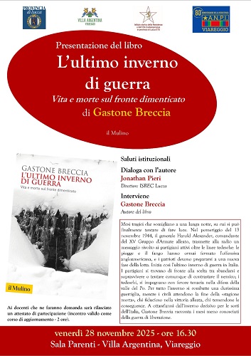 Un dialogo tra Gastone Breccia, autore del libro "L'ultimo inverno di guerra" - ed. Il Mulino - e il direttore dell'Istituto storico della Resistenza e dell'Età contemporanea di Lucca, Jonathan Pieri è l'appuntamento in programma venerdì 28 novembre alle 16,30 nella Sala Parenti di Villa Argentina.