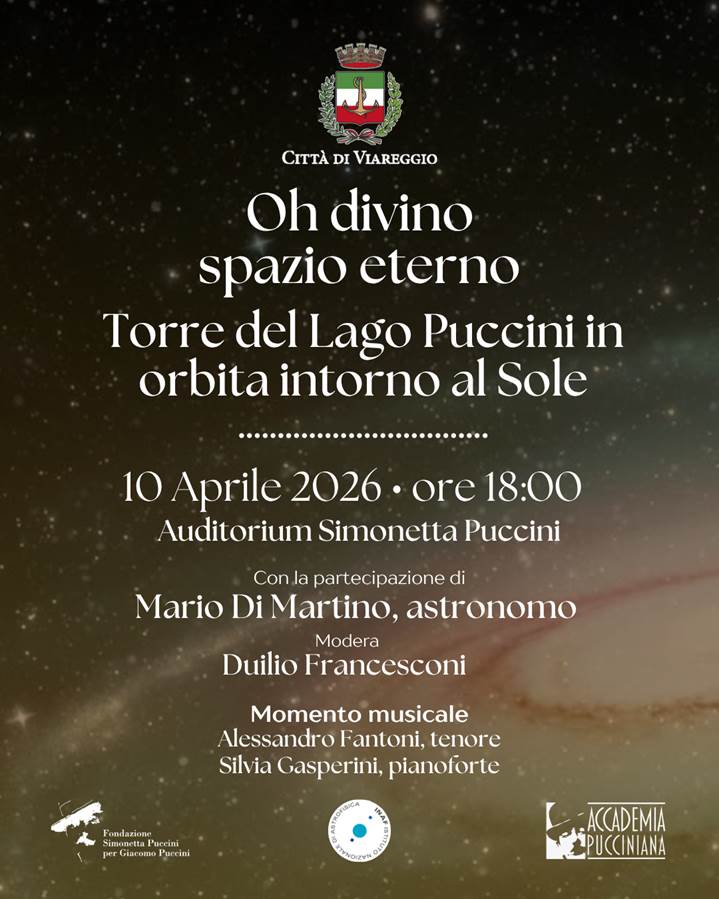 L'annuncio sarà al centro dell'iniziativa organizzata dal Comune di Viareggio, dal titolo "Oh divino spazio eterno – Torre del Lago Puccini in orbita intorno al Sole", in programma il 10 aprile alle 18 all'Auditorium Simonetta Puccini, un luogo simbolico che unisce memoria, arte e ricerca.
