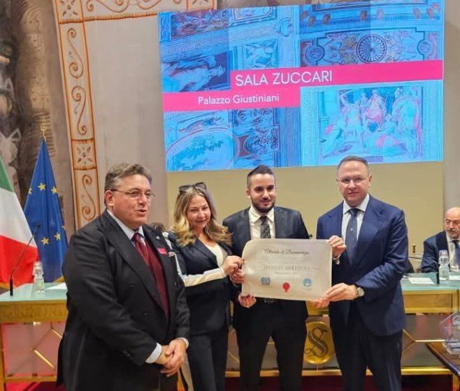 "È per me una grande emozione ed un onore ricevere questo speciale riconoscimento Eccellenza Italiana al Senato della Repubblica – ha dichiarato Daniele Bartocci, marchigiano d'origine ma ormai versiliese d'adozione (da anni presente anche alle Olimpiadi del Cuore di Forte dei Marmi) premiato ieri in diretta sul canale tv del Senato, riconosciuto per il suo impegno proficuo all'interno del panorama food and sport italiano - Non è soltanto un riconoscimento individuale, ma un premio che sento di condividere con tutte le persone che mi hanno sostenuto negli anni, dandomi sempre più stimoli per continuare a lavorare con determinazione ed entusiasmo". Nato nel 2014 con il patrocinio del Ministero degli Esteri nell'ambito delle Giornate Internazionali dell'Emigrazione con l'Asmef, promosso da Fondazione E-Novation, il Premio Eccellenza Italiana viene consegnato tra Washington e Roma da ormai 12 anni. Celebra professionisti, realtà imprenditoriali e prodotti italiani di successo che si distinguono per innovazione, sostenibilità, creatività e promozione del Made in Italy nel mondo, valorizzando talento e meritocrazia. Ieri mattina si è parlato anche di emigrazione, di spopolamento dei borghi e del turismo delle radici. Bartocci, diventato papà da pochi giorni, a tal proposito ha scritto – sul fronte emigrazione - un saggio storico esclusivo sul primo anno italiano di Julio Velasco (Volley Jesi, serie A2 1983/84), sotto lo sponsor Tre Valli), giunto nelle Marche dall'Argentina 42 anni fa, prima di passare alla Panini Modena e diventare uno dei tecnici più vincenti a livello mondiale. Nei giorni scorsi era stato eletto tra i migliori 40 under 40 d'Europa ai Business Elite Awards Top 40 Under 40 2025. Negli ultimi anni Bartocci, giudice anche agli Spaghetti Arselle Awards, ha ricevuto vari riconoscimenti, non solo in Toscana (come il Premio Nazionale Filosofia 2025, la menzione d'onore a Stazzema al Premio Michelangelo Buonarroti, il riconoscimento speciale al Premio La Ginestra di Firenze) ma lungo la penisola. Tra questi il premio 100 Eccellenze Italiane 2023 a Montecitorio con Gigi Buffon, Paolo Bonolis e Prof. Giorgio Calabrese, il Food and Travel Awards 2022, il premio Andrea Fortunato al Salone d'Onore del Coni e il Myllennium Awards 2020, premiato nell'occasione tra i migliori 30 talenti millennials d'Italia dall'allora Ministro Politiche Giovanili Vincenzo Spadafora e da Giovanni Malagò (ex Presidente Coni).