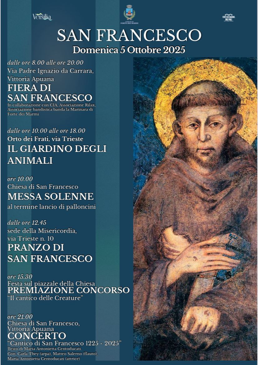 "La Festa di San Francesco rappresenta un appuntamento particolarmente sentito dalla comunità di Vittoria Apuana - sottolinea l'Amministrazione Comunale - e dall'intero territorio. È una ricorrenza che unisce la dimensione religiosa a quella civile, creando momenti di spiritualità, ma anche occasioni di partecipazione e di socialità. Il programma di quest'anno, che accosta celebrazioni, iniziative per i bambini, spettacoli e musica, esprime il valore del ritrovarsi insieme, rafforzando i legami della comunità nel segno del patrono. Invitiamo cittadini e ospiti a partecipare a questa giornata, che riflette lo spirito di condivisione e la vitalità culturale di Forte dei Marmi".