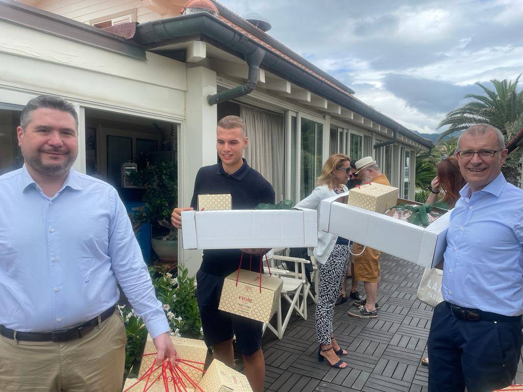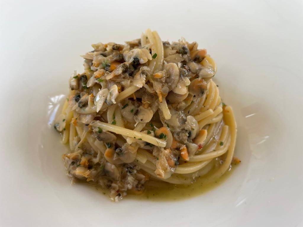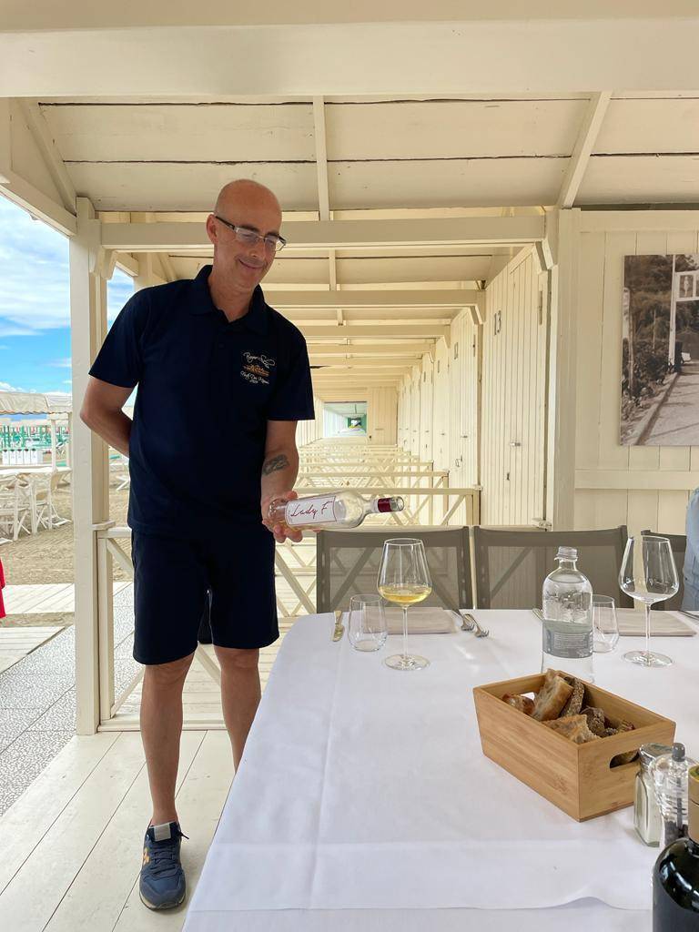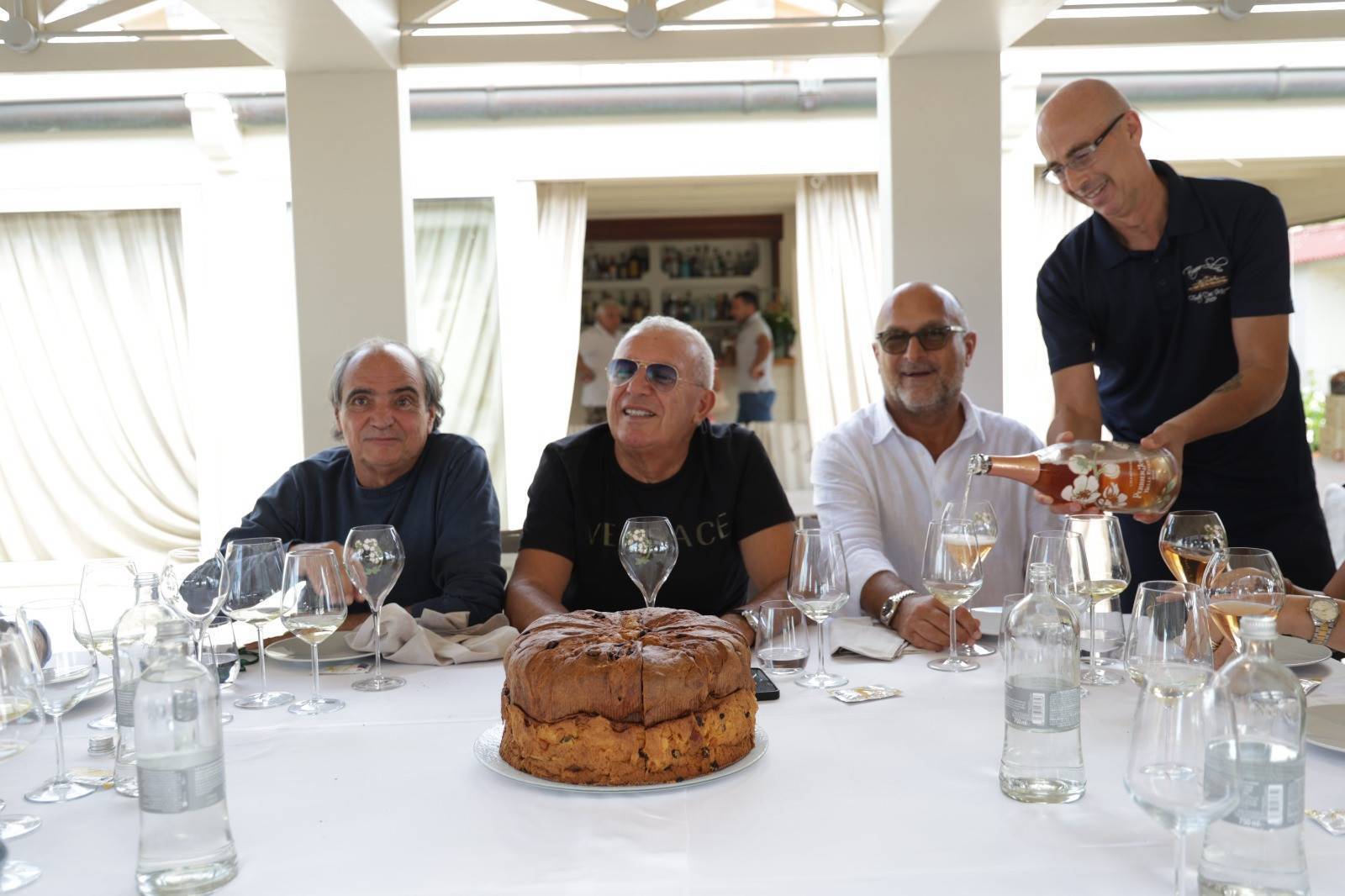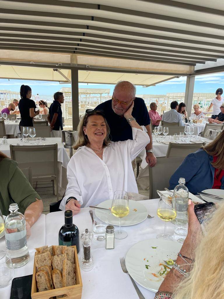 Quanto al pranzo, che dire? Mercatali non ha, giustamente, voluto sentire ragioni e come dargli torto? Già nel suo ultimo libro scritto a quattro mani con Davide Paolini, A tavola vista mare, aveva tessuto le lodi dello spaghetto alle arselle, piatto tipico versiliese, e così è stato anche oggi. Prima, però, una insalata di mare che definire insalata sarebbe riduttivo, in realtà una composizione di mare deliziosa. A fianco un olio rigorosamente d'autore firmato Marchesi Antinori. Il tutto annaffiato da un vino particolare, il Lady F Orpicchio di Donne Fittipaldi da Bolgheri e, a seguire, un vermentino 'Solo Sole' Poggio al Tesoro 2021 sempre da quel paradiso enologico che trova le sue radici nel comune di Castagneto Carducci. Presente e, come sempre, affascinante, Maria Fittipaldi Menarini che conduce l'azienda insieme alle sue quattro figlie.