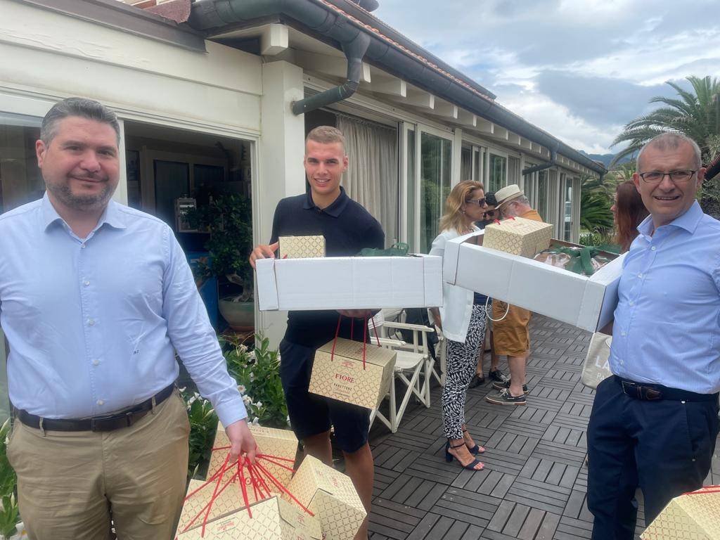 Gianni Mercatali ha voluto siglare l'evento come solo lui è capace di fare, abbinando al panettone uno champagne rosé Perrier Jouet in magnum da un litro e mezzo che se ne è andata via in un battibaleno, versata, tra l'altro, nei calici artisticamente disegnati dalla maison fondata nel 1811 ad Epernay da Pierre-Nicolas Perrier.