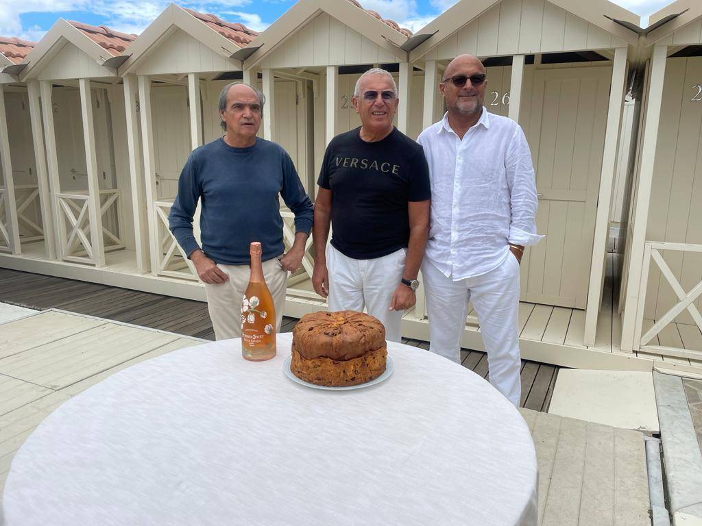 Panettone a Ferragosto un'eresia? Ma chi lo ha detto? Di certo non lo dice Davide Paolini, il Gastronauta, che, anzi, da sempre porta avanti una 'campagna' di sensibilizzazione e di educazione gastronomica per promuovere il consumo del dolce più amato dagli italiani - e non solo - durante tutto l'anno. E proprio oggi, al Bagno Silvio di Forte dei Marmi, uno dei più esclusivi ed eleganti della Versilia, sotto la sapiente e capiente regia di Gianni Mercatali, genio della comunicazione e l'arte culinaria dello chef stellato Igles Corelli, l'azienda senese Fiore 1827 rappresentata dal patron Gabriele Filippini ha presentato il suo panettone artigianale a lievitazione naturale. Per l'occasione è stato anche portato in tavola un esemplare da tre chili, soffice, profumato e gustoso come non mai, una droga per i sensi.