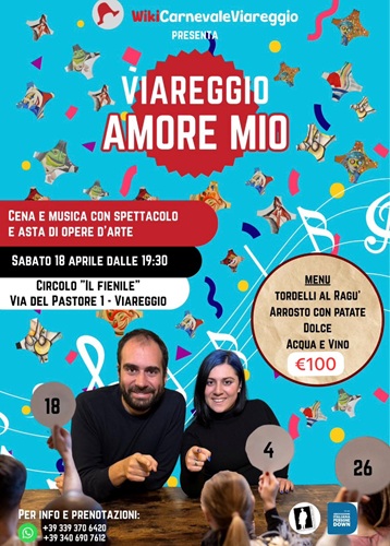 A seguire, dalle ore 19:30 si terrà una cena con spettacolo organizzata dai volontari di WikiCarnevaleViareggio. Si esibiranno numerose personalità di spicco del panorama canoro e teatrale viareggino, il tutto condotto da Tommaso Lucchesi e Sara Lazzarini. A chiudere, i volontari di WikiCarnevale terranno un'asta di opere d'arte di carristi e artisti del Carnevale di Viareggio. Il ricavato andrà in beneficenza all'Associazione Italiana Persone Down-AIPD.