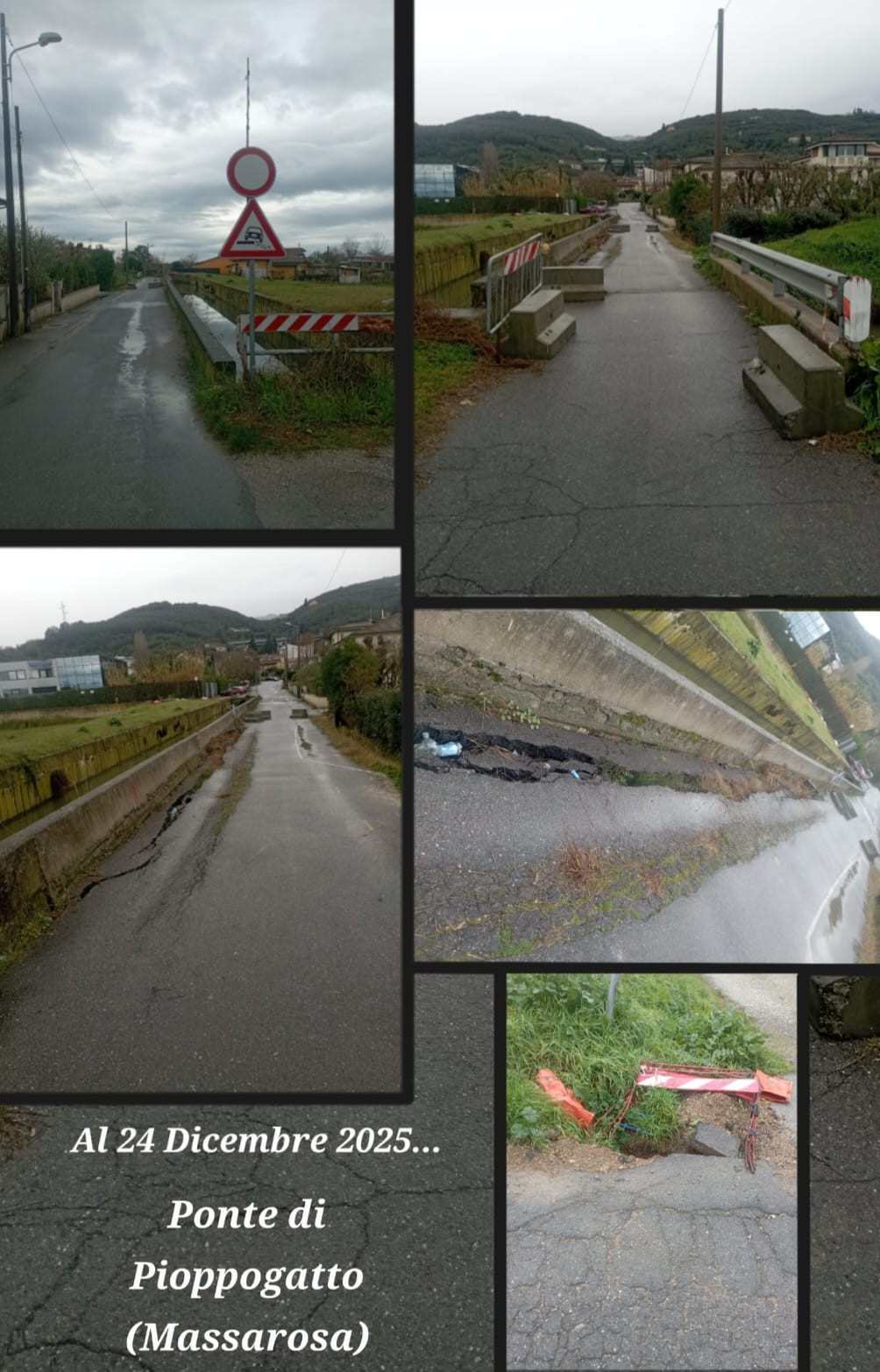 Emblematica è la situazione del Ponte in Via Pioppogatto tra le varie promesse non mantenute nel 2025. A partire dal cedimento arginale avvenuto alla fine di agosto 2022, che ha compromesso la stabilità della carreggiata e del ponte, la strada è rimasta inaccessibile, isolando l'area produttiva di via del Guado e creando difficoltà per le abitazioni e il campo sportivo locali. Nonostante le promesse dell'Amministrazione Comunale, dell'ex Assessore ai Lavori Pubblici Natali, dell'attuale Consigliera delegata Sargentini e della Sindaca Barsotti, tutto ancora tace.