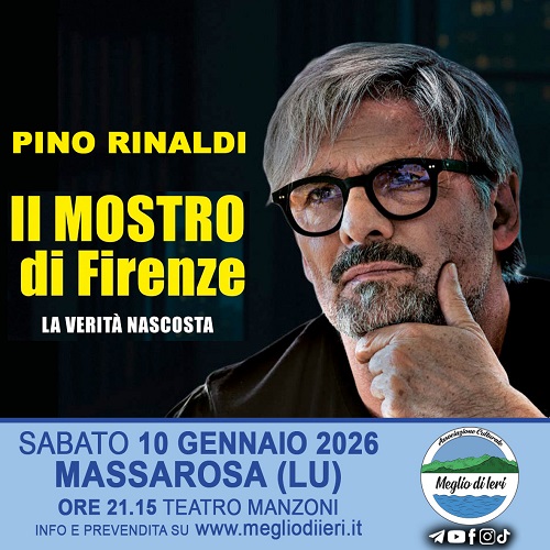 Sabato 10 gennaio alle 21.15 il giornalista Pino Rinaldi sarà al Teatro Manzoni di Massarosa per "Il Mostro di Firenze: la verità nascosta" - Per tutte le info e per acquistare il biglietto cliccare sul link: https://www.megliodiieri.it/s/spettacoli/stagione-2025/pino-rinaldi-il-mostro-di-firenze-la-verita-nascosta/