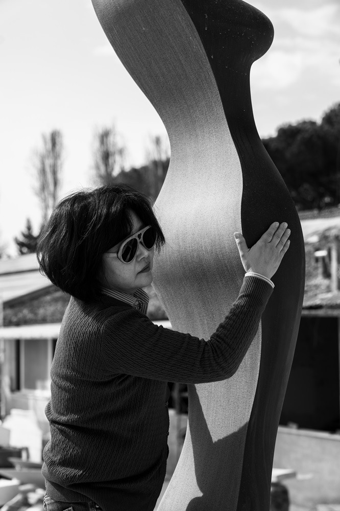 La mostra rappresenta inoltre una celebrazione del profondo legame dell’artista sudcoreana con il territorio apuo-versiliese. Formatasi tra la Mok-Won University in Corea e l’Accademia di Belle Arti di Carrara, Choi Yoon Sook ha trovato nella città di Pietrasanta il suo ecosistema creativo ideale. Fondamentale per la realizzazione di questo progetto espositivo è la sinergia dell’artista con il maestro scultore Nicola Stagetti dello storico Studio Stagetti, luogo d’eccellenza in cui la scultrice lavora quotidianamente plasmando le sue creazioni, trasformando l’intuizione in materia tangibile. L’esposizione è stata fortemente voluta e allestita da Fiorenzo Bellina, fondatore e proprietario delle Gallerie Bellina che, in stretta collaborazione con Marta Bellina e Nicola Stagetti, ha selezionato un corpus di sculture la cui intensità formale ed espressiva rappresenta l’apice della produzione dell’artista. Una scelta che conferma il ruolo primario delle Gallerie Bellina nel promuovere un’arte contemporanea di alto livello, capace di rimettere l’uomo al centro del discorso. L’Artista Choi Yoon Sook vanta un curriculum espositivo di respiro internazionale, con opere presenti in collezioni sia pubbliche che private in Italia, Stati Uniti, Inghilterra, Russia, Corea e Principato di Monaco. La sua sperimentazione si distingue per il «metantropomorfismo», un’indagine in cui la fisionomia umana e la geometria si fondono, restituendo alla superficie lapidea una vitalità pulsante e, in alcune opere, una sorprendente funzionalità che accorcia le distanze tra l’oggetto artistico e chi lo vive.