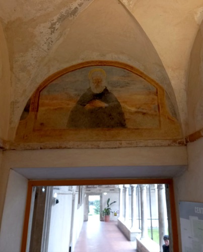 I lavori sulle lunette sono iniziati a marzo 2023 con il monitoraggio delle superfici e la messa in sicurezza delle porzioni di intonaco che si sono rivelate a rischio di distacco e caduta. Conclusi la scorsa primavera, si sono sviluppati in modalità differenziata: per 9 dei 28 affreschi lungo il Chiostro, gli unici a essere visibili e in discreto stato di conservazione, l'intervento si è risolto in una revisione estetico-conservativa con pulitura e ricostruzione pittorica; per gli altri 19, invece, si è resa necessaria un'opera più profonda con “bendaggi” protettivi, consolidamenti, rimozioni di tinteggiature o intonaci sovrapposti e stuccature, prima di procedere con il risarcimento della pittura. Attività di restauro conservativo ed estetico sono state riservate anche alle 2 lunette lungo il vano scala, la prima alla base della salita, la seconda sul piano mezzanino.