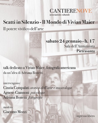 Sabato 24 gennaio, alle ore 17, la suggestiva cornice della Sala dell'Annunziata a Pietrasanta ospiterà un incontro speciale dedicato a una delle figure più affascinanti della fotografia del Novecento: Vivian Maier. Un talk multidisciplinare che vuole esplorare il potere vivifico dell'arte attraverso l'obiettivo della celebre fotografa americana. L'evento, intitolato "Scatti in Silenzio - Il Mondo di Vivian Maier", nasce da un'idea della fotografa Adriana Bonetti e si propone di andare oltre la semplice biografia, ricercando "il potere vivifico dell'arte" e la capacità della fotografia di farsi voce nel silenzio. L'evento organizzato dall'associazione culturale CantiereNove vedrà la partecipazione di esperte che analizzeranno l'opera di Maier da prospettive diverse e complementari: Cinzia Compalati, storica dell'arte e museologa, approfondirà l'eredità artistica e l'impatto del racconto delle fotografie della Maier; Agnese Giannoni, psicologa, esplorerà i risvolti interiori e la necessità espressiva dietro la produzione della fotografa; Adriana Bonetti, fotografa, offrirà uno sguardo personale ed emotivo sul linguaggio visivo dell'artista. L'incontro sarà moderato dal fotografo e giornalista Giacomo Mozzi, che guiderà il dialogo tra gli ospiti e le domande del pubblico presente.