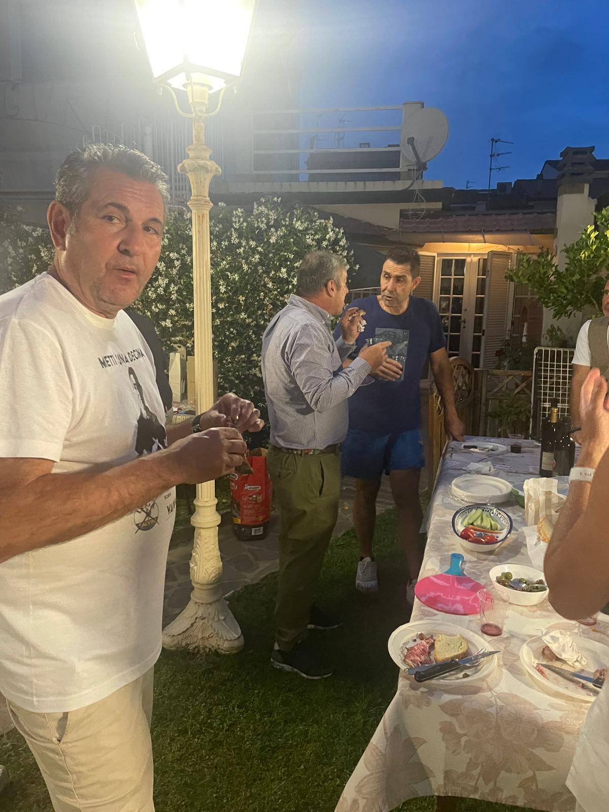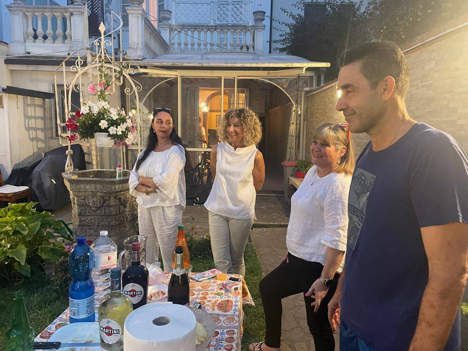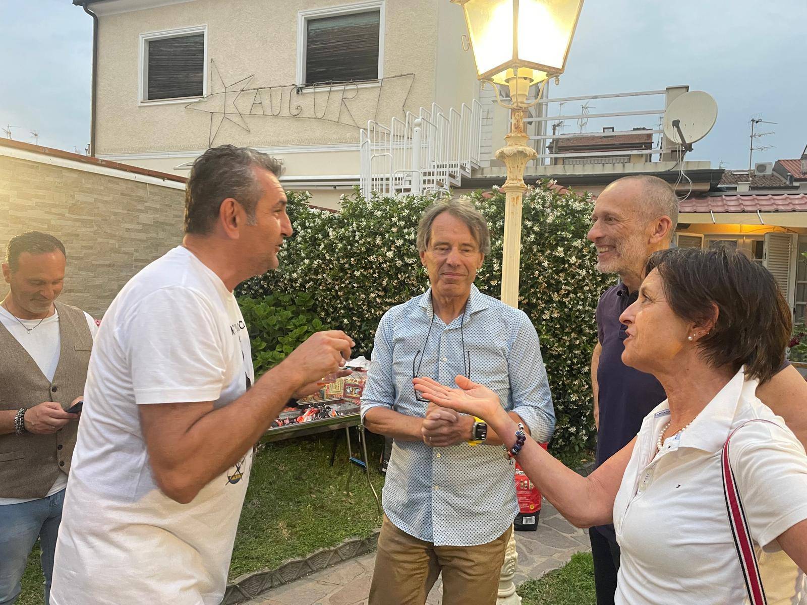Ci sono Gianmarco Medusei, consigliere regionale della Lega, spezzino, poi Cristiano Romani, direttamente da Arezzo, anche lui uns eguace di ferro che non ha mai mancato un appuntamento e da sempre impegnato sul fronte culturale oltreché politico. Quindi il tenente colonnello Fabio Filomeni, presidente nazionale dei comitati Il mondo al contrario, l'imprenditore viareggino Alessandro Sforzi e signora. Poi c'è, squisita, la padrona di casa, Camelia, che con la sua pacatezza riesce a trasmettere una sensazione di calma della quale beneficia tutto l'ambiente.